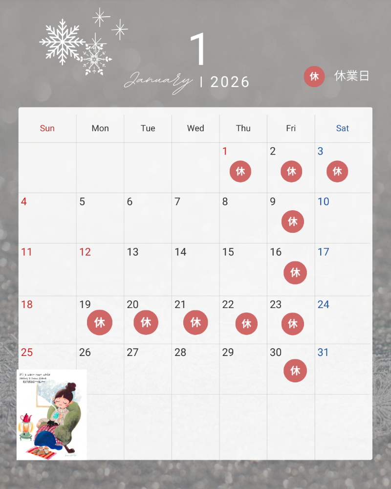 ※1月19日(月)〜22日(木)も休業致します。ご迷惑をおかけします。よろしくお願い致します🙇♀️